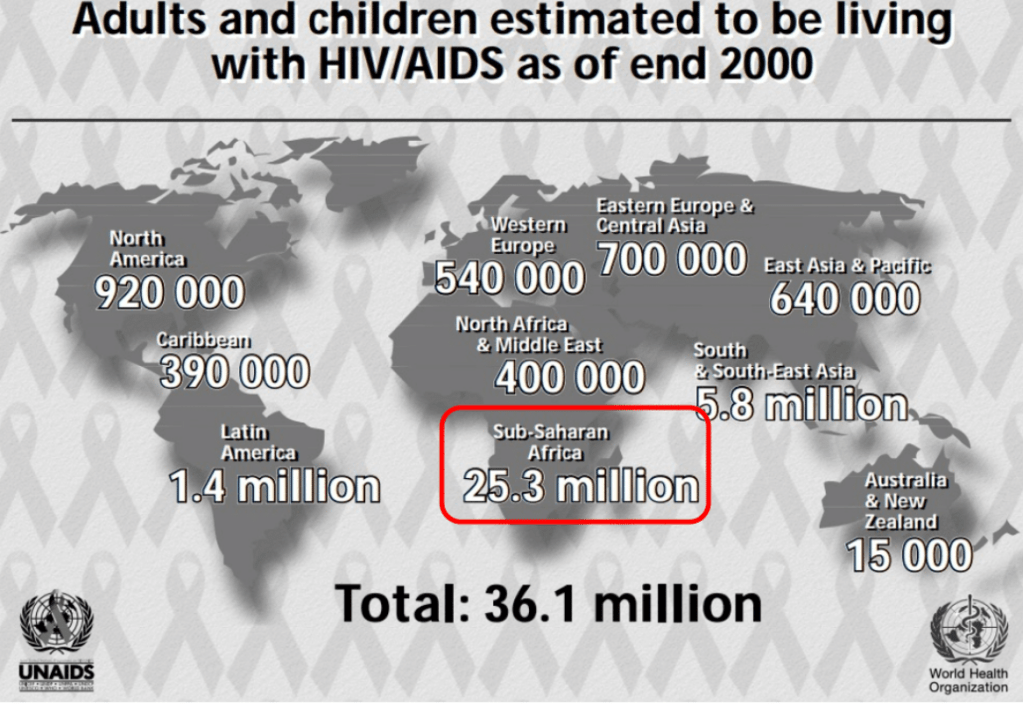 Finally in the mid 90s a new class of drug, the protease inhibitors, offered a new hope, and in 1996 the concept of triple therapy became the gospel of HIV treatment. Unfortunately the mixture of drugs used to treat HIV often had terrible side effects, with metabolic complications and body shape changes, muscle wasting and fat deposition in the wrong places, and although they did save many lives, it was not without cost. HIV patients back then were often on a cocktail of dozens of different pills a day, and the treatment side effects meant that most were unable to work. Meanwhile over in Africa, medications weren’t so easy to come by, and the epidemic was in full swing.
