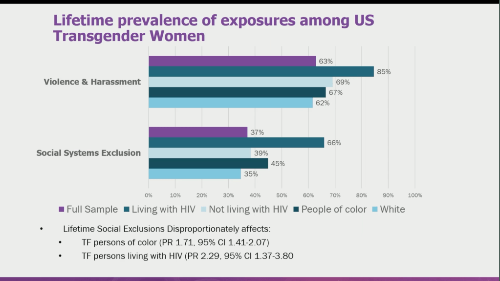 The trans content at CROI this year was somewhat underwhelming, no doubt in part due to the DEI executive orders in place. There was however an entire symposium named “Counting and Caring for Transgender and Gender Diverse Individuals.” It was sobering to see the extent of exposure to violence and social systems exclusion experienced by trans women in the US .